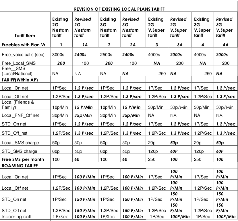 Revised [Costly] AP BSNL Prepaid Tariff from February